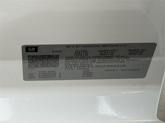- VIN : 1GTU9FEL2KZ404316