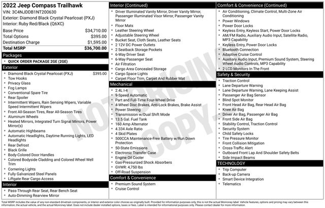 This exceptional 2022 Jeep Compass Trailhawk is a must-see for anyone seeking a versatile and capable SUV that combines off-road prowess with refined style and advanced technology. Experience the difference for yourself by scheduling a test drive today. We're confident you'll be impressed by the Compass Trailhawk's exceptional performance and impressive list of features.