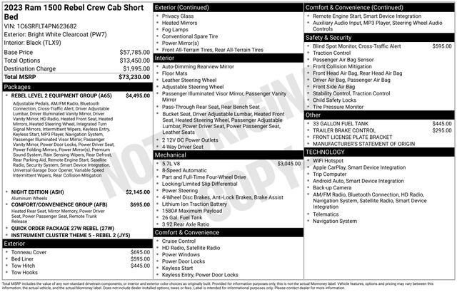 Whether you're embarking on off-road adventures, towing heavy loads, or simply seeking a capable and well-equipped daily driver, this 2023 Ram 1500 Rebel 4X4 is the perfect choice. Experience the power, capability, and premium features that make this truck a standout in its class. Visit our showroom today to take it for a test drive and discover the difference for yourself.