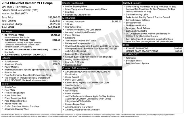 The Camaro 2LT's striking exterior, with its sleek lines and aggressive stance, commands attention wherever it goes. Step inside and you'll be greeted by a cabin that seamlessly blends style and functionality. Enjoy the comfort of heated and ventilated front seats, the convenience of dual-zone automatic climate control, and the cutting-edge technology of the Chevrolet Infotainment 3 Plus system, complete with Apple CarPlay and Android Auto integration.